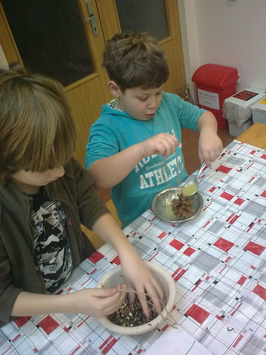 V prostějovském ekocentru jsme se seznámili se zásadami přikrmování ptáků v zimě a vyrobili jsme si jednoduché krmítko.